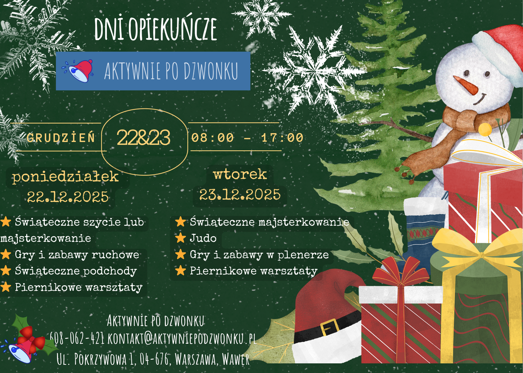 Świąteczne Dni Opiekuńcze – 22.12 (poniedziałek) & 23.12 (wtorek)